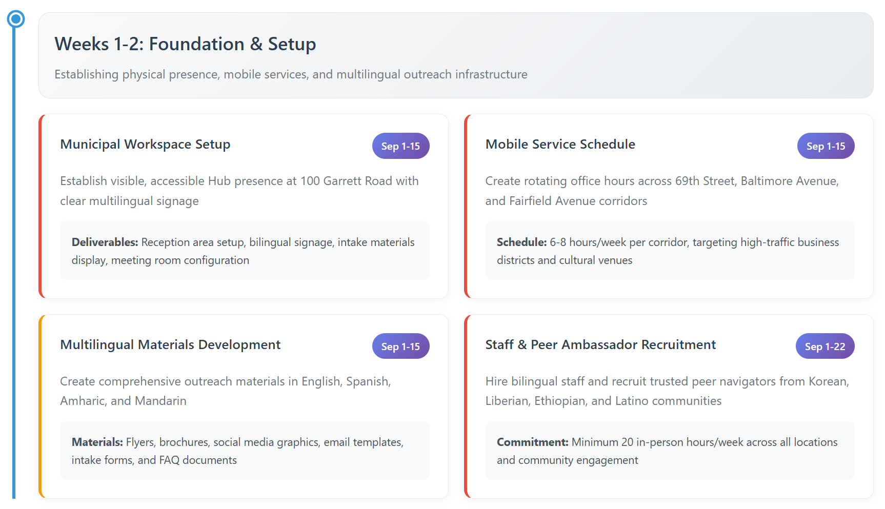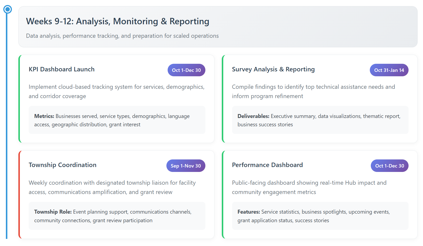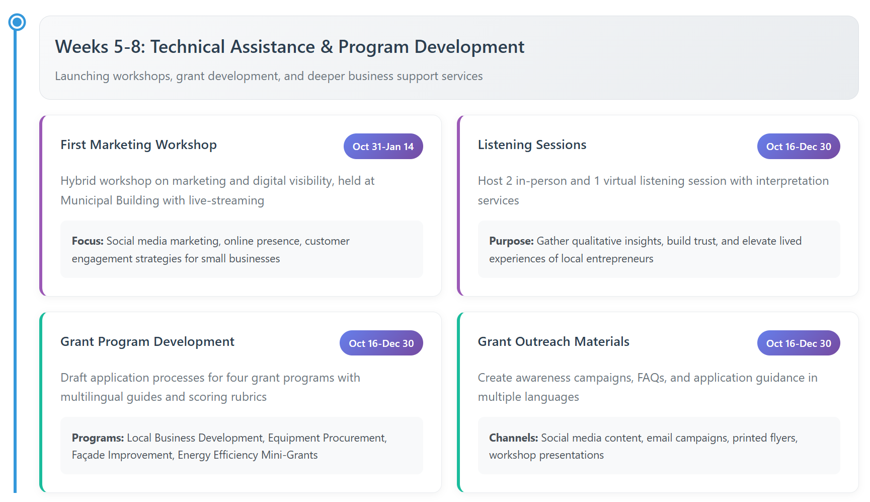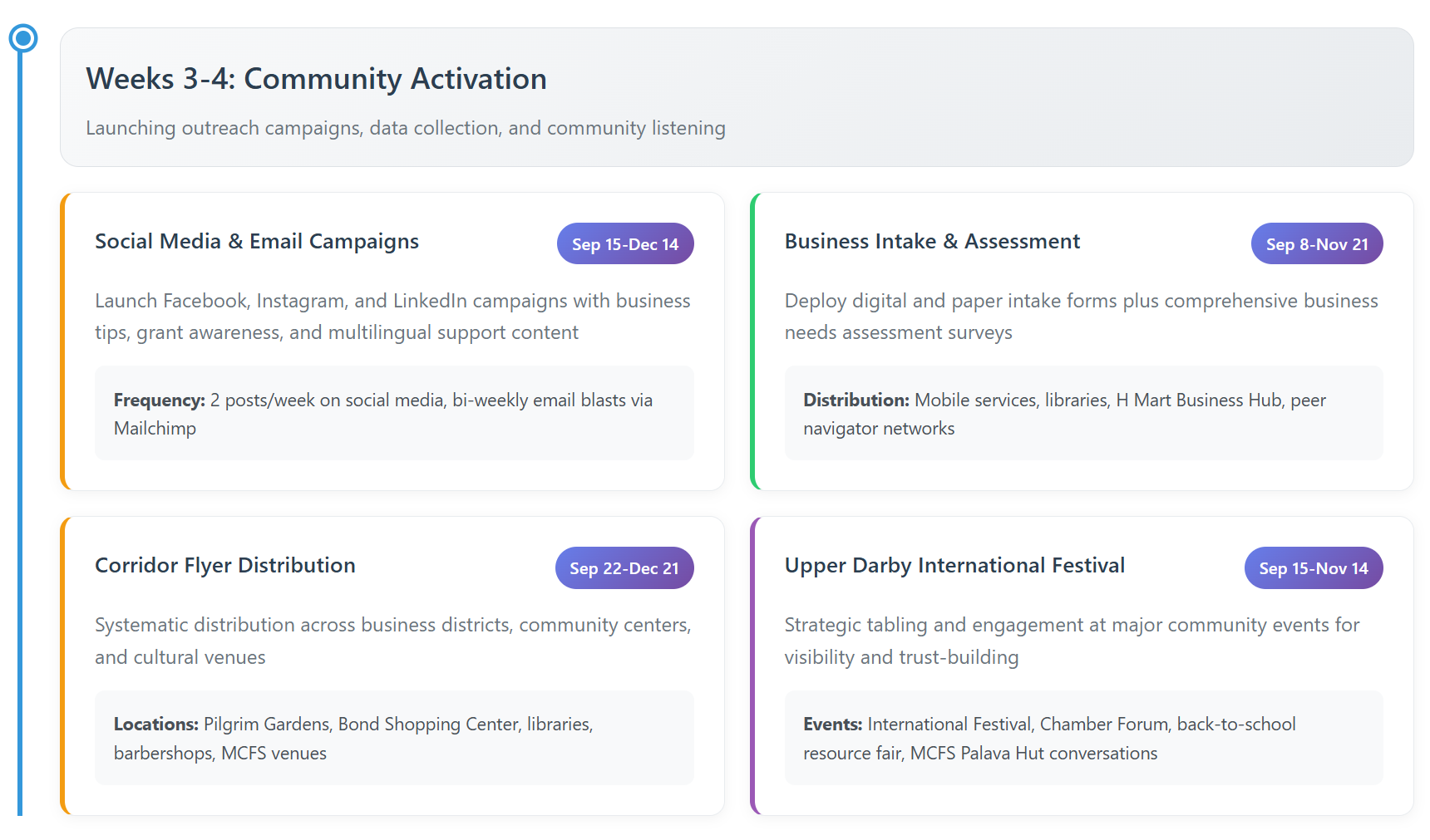 ·A live KPI dashboard tracking services, demographics, and outcomes and a sustainable infrastructure for long-term entrepreneurial support across all commercial corridors.